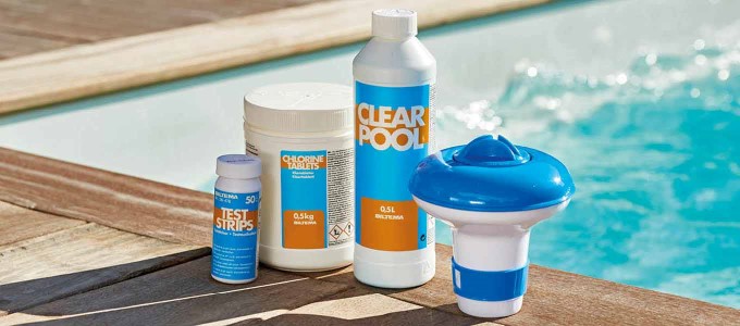- Disinfect the pool water. It is important that the water in your pool is fresh to swim in. To ensure this, you can disinfect the pool water with chlorine. You will find several different products within this category at Biltema. For example, you can choose between weekly chlorine tablets or quick-chlorine granules.