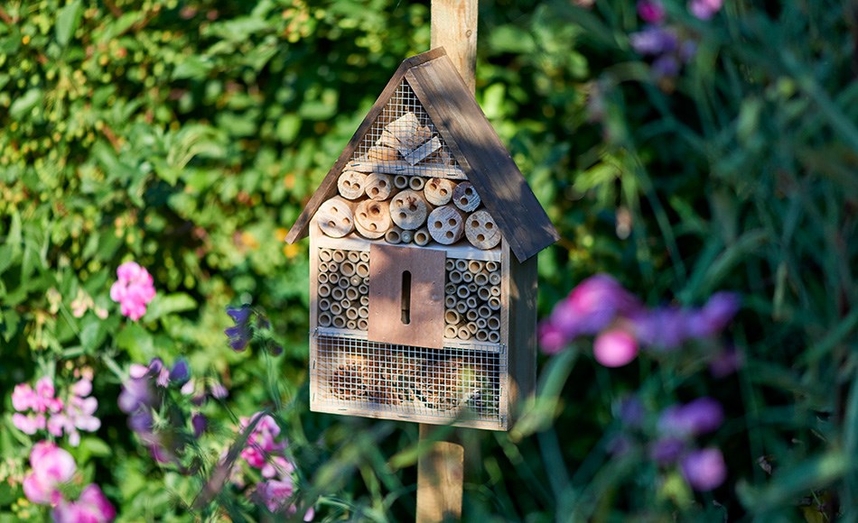 Create nests for various insects using a so-called insect hotel. These you can either make yourself or buy ready-made. The hotels are often made of hollow bamboo or similar. They can also be filled with cones, branches or smaller pieces of wood. Do not forget to cover it with a piece of netting, such as chicken netting, so that birds or the like so that the hotel does not become an insect buffet for birds and other animals!