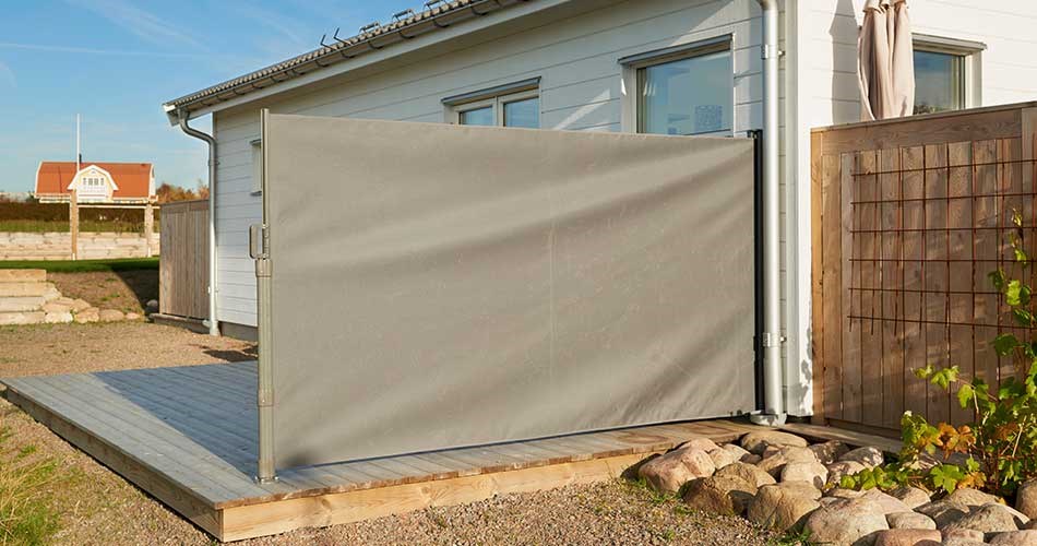 - Does your balcony get a lot of wind? Then you should consider mounting a side awning. When you pull out the side awning, it serves to protect you from the wind, which will make it more enjoyable to spend time on the balcony. As a bonus, a side awning also creates privacy – either from both sides of the balcony or one side, depending on whether you mount one or more awnings. And depending on the position of the sun, a side awning can also be an effective solution.