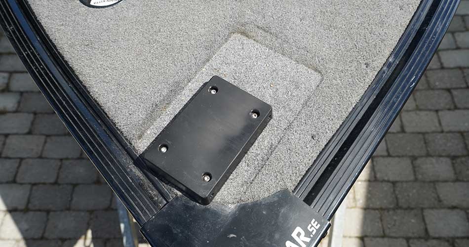 Mounting plate - The mounting plate should be secured with full-length bolts. If there is no plate at the bow of your dinghy, you can make and mount one. Biltema’s bow-mounted electric motor comes with mounting plate.