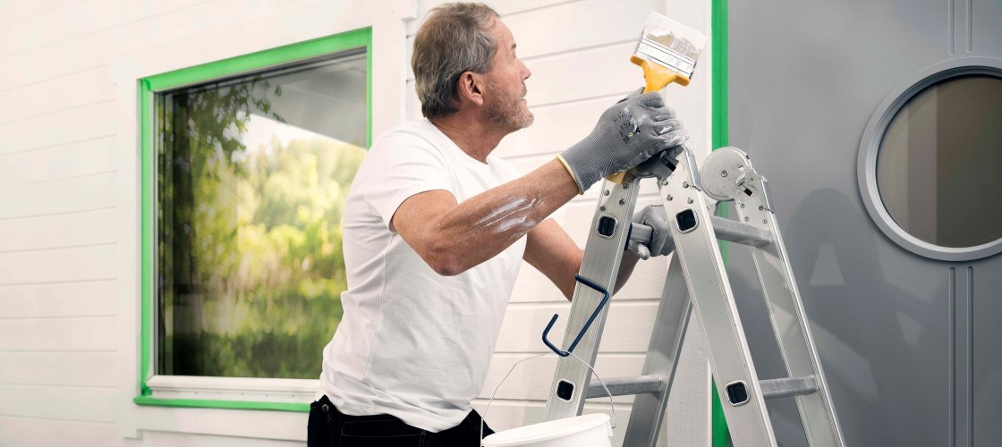 – Et alternativ er at montere penslen eller rullen på et teleskopskaft. Dermed kan du nå flere meter op ad væggen. Så behøver du ikke klatre så meget på stiger.