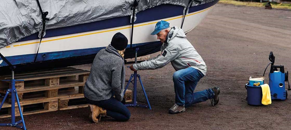 Når båden er sikkert på plads, er det tid til at gennemgå bådens tilstand. Ridser og andre skader, der er opstået i løbet af sæsonen, kan slibes ned om efteråret. Disse kan tørre under vinteropbevaringen og derefter repareres om foråret, inden båden søsættes igen.