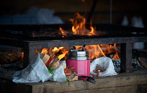 Madpakker og kaffe eller varme drikke i en termokande smager fantastisk midt i naturen, mens en dejlig suppe fra en termoflaske giver varmen på en kold frostdag. Mange mener dog, at intet slår en pølse stegt over et bål! I frokostpausen skal du huske at tage nogle ekstra lag tøj på og sidde på en kuldeisolerende måtte, så du kan holde kulden på afstand.