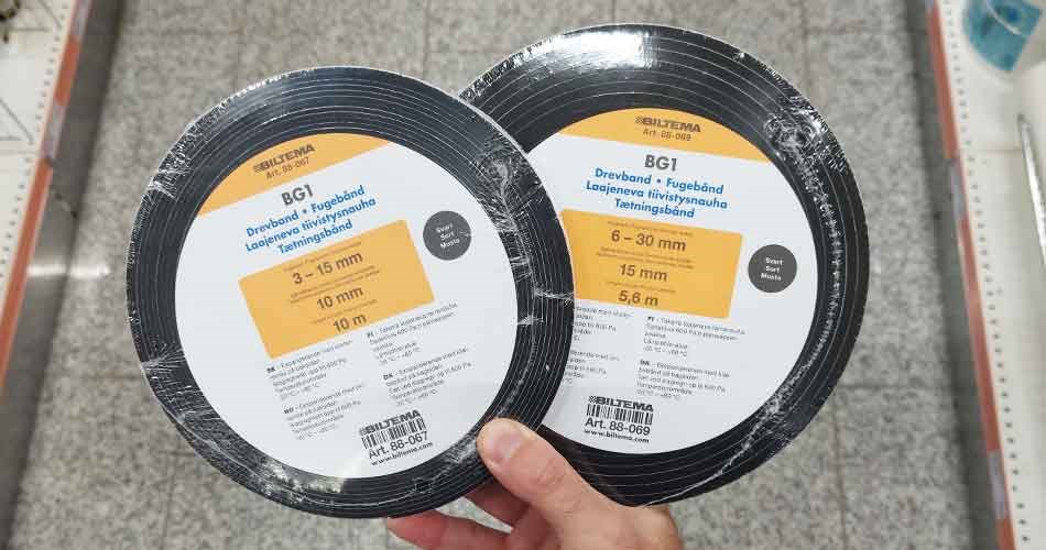 Bemærk, at fugebåndet, som er forkomprimeret, besidder en selvklæbende side, der skal monteres på vinduet eller døren, ikke på murværket. Fugebåndet har desuden en evne til at ekspandere, hvilket betyder, at det udvider sig efter kort tid. Pas derfor på med at holde pauser, når du først er gået i gang.