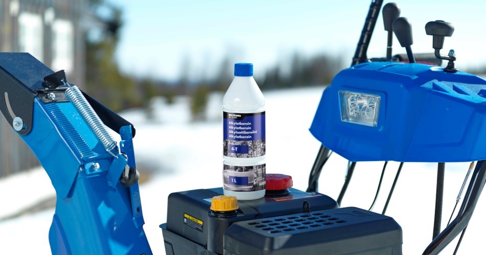 • Fyld op med frisk brændstof næste vinter. Hvis sneslyngen skal opbevares om sommeren, er det bedre ikke at fylde benzin på, da benzin er et letfordærveligt produkt. Alternativt kan man bruge alkylatbenzin til 4-taktsmotorer, da den har længere holdbarhed.