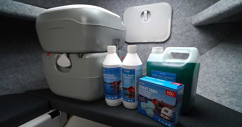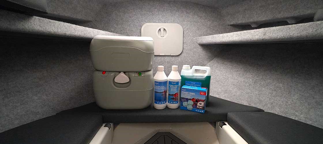 Brug de rigtige rensemidler til det kemiske toilet og husk at påfylde sanitetsvæske, der sørger for en lugtfri oplevelse ombord.