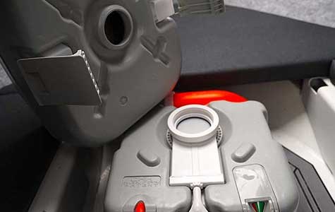 Det transportable toilet er udstyret med en smart skyllemekanisme som gør rengøringen nem og mindske lugtgener, hvis man følger brugsanvisningen og benytter sanitetsvæske. Tømningen sker med det indbyggede rør. Du kan tømme det i det normale toilet, når man er i havnen eller i tømningsstationen som tidligere nævnt. Når indholdet er tømt ud, skyller man med ferskvand og påfylder sanitetsvæske.