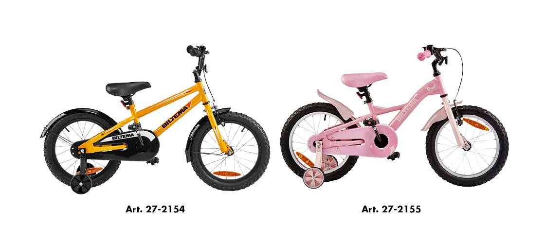 Vi tilbagekalder børnecyklerne 16” med artikelnummer 27-2154 & 27-2155 på grund af kvalitetsmæssige fejl i konstruktionen. Selvom det kun er et lille antal cykler, der har vist sig at have disse fejl, har vi besluttet at tilbagekalde alle solgte cykler som en sikkerhedsforanstaltning.