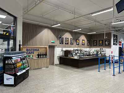 Tag en pause fra indkøbene i vores hyggelige Biltema cafe.