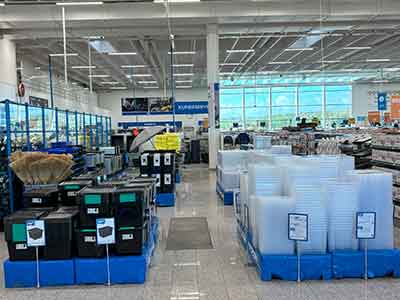 Indenfor finder du hele Biltemas samlede produkt-sortiment, og er du sulten, kan du snuppe en fransk hotdog med dig på farten.